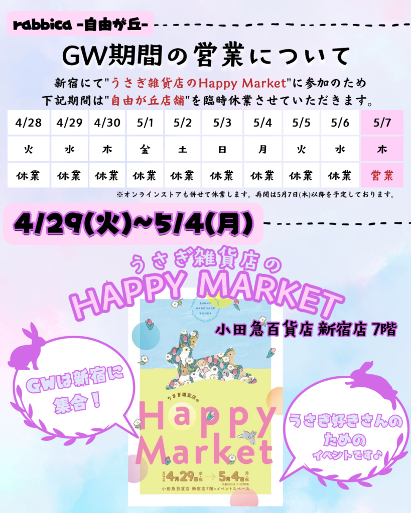 ゴールデンウィーク期間中の臨時休業のお知らせ